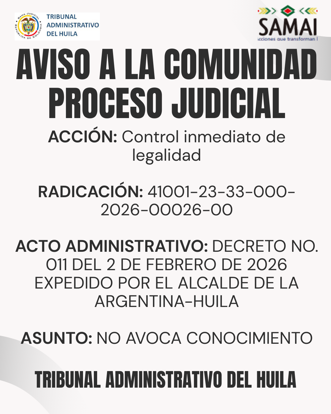20 Febrero 2026 AVISO A LA COMUNIDAD - CONTROL INMEDIATO DE LEGALIDAD - 2026-00026-00 AUTO NO AVOCA tweet